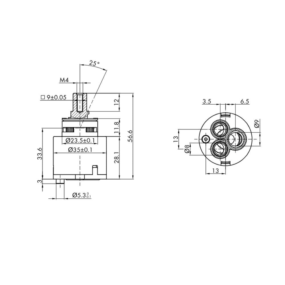Ο Kerox K35C είναι κεραμικός μηχανισμός εξαιρετικής ποιότητας Ø35 mm, κατάλληλος για θερμομεικτικές μπαταρίες, προσφέροντας εξαιρετική απόδοση, ακρίβεια και μεγάλη διάρκεια ζωής. Κατασκευασμένος με υψηλής ποιότητας κεραμικούς δίσκους από Al₂O₃ και πιστοποιημένος σύμφωνα με τα διεθνή πρότυπα EN 817 και ASME.