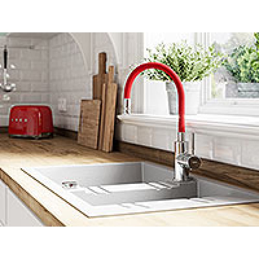 Μπαταρία Κουζίνας Zumba Ψηλή Σπαστή Κόκκινη Ferro BZA4R – Αναμεικτική μπαταρία κουζίνας με πρακτική σπαστή κατασκευή και κομψό κόκκινο φινίρισμα. Μπορεί να τοποθετηθεί είτε στον πάγκο είτε στον νεροχύτη, απαιτώντας μόνο μία οπή για την εγκατάσταση.