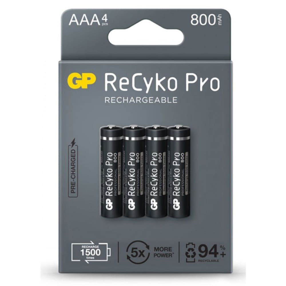 Οι επαναφορτιζόμενες μπαταρίες Recyko Pro AAA προσφέρουν βελτιωμένη απόδοση και μακρά διάρκεια ζωής. Με χωρητικότητα 850mAh και τεχνολογία νικελίου-υδριδίου μετάλλου (NiMH), κρατούν τη φόρτιση για μεγαλύτερο χρονικό διάστημα και επαναφορτίζονται χωρίς να επηρεάζεται η μνήμη. Ιδανικές για συσκευές υψηλής κατανάλωσης.